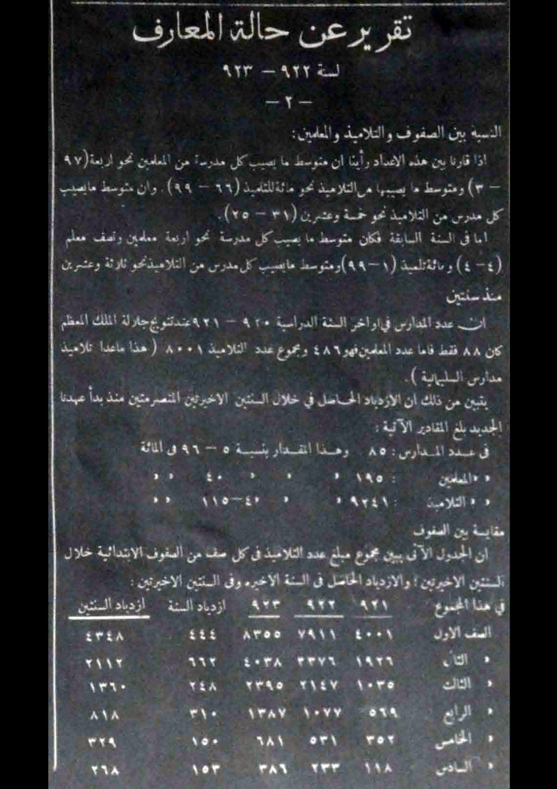 تقرير عن حالة المعارف لسنة 922 - 923.