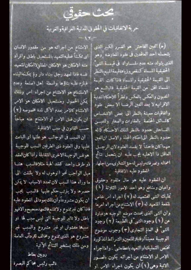 حرية الاتفاقيات في الحقوق المدنية العراقية والغربية.