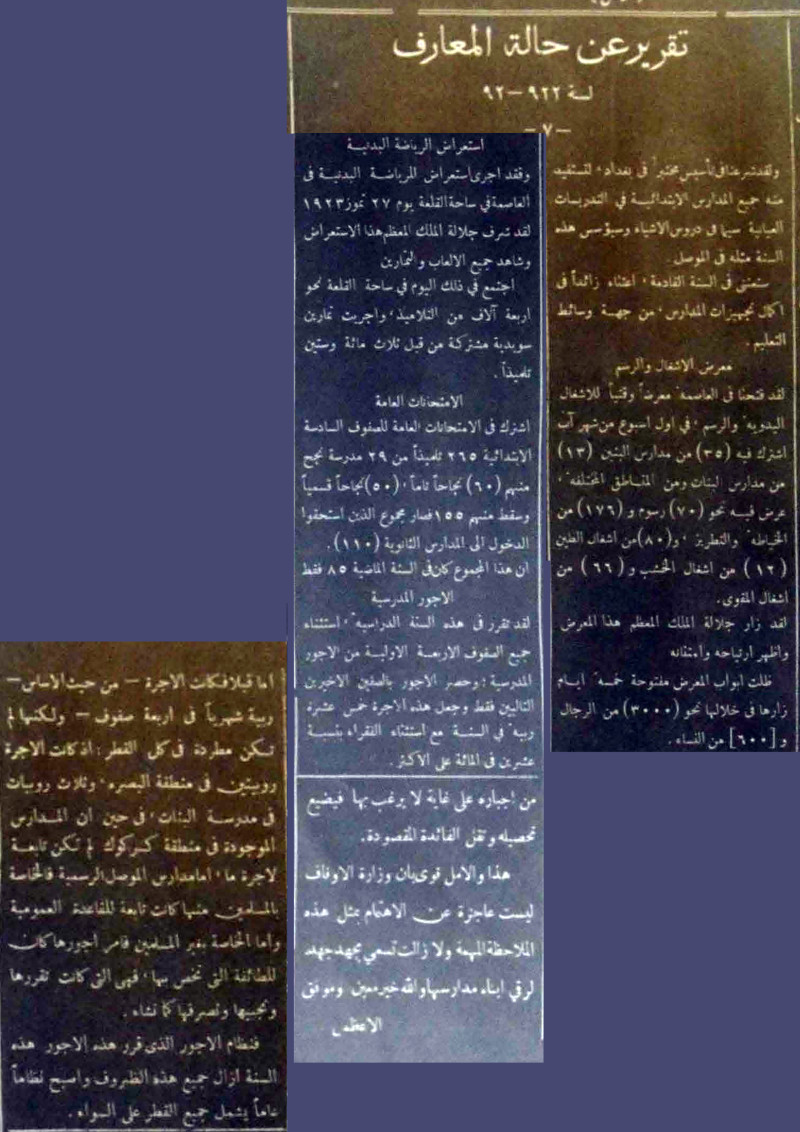 تقرير عن حالة المعارف لسنة 922 - 923.