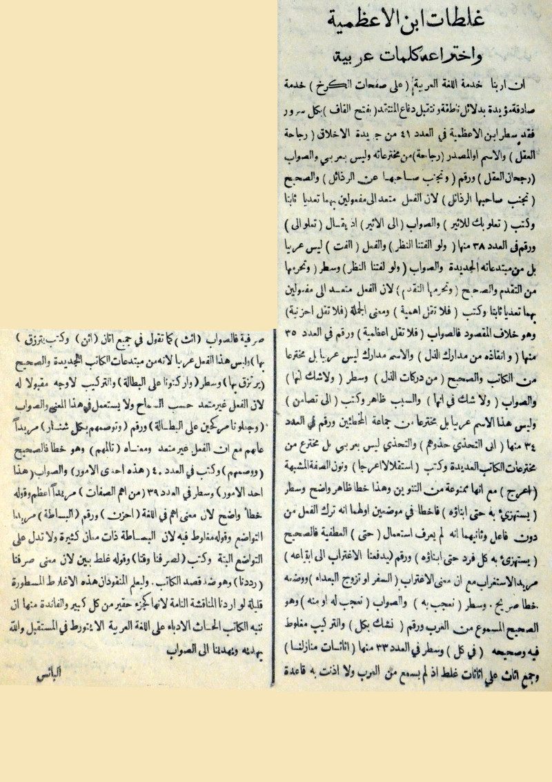 غلطات ابن الاعظمية واختراعه كلمات عربية.