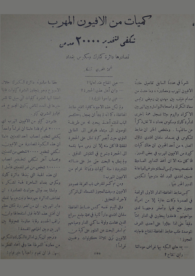 كميات من الافيون المهرب تكفى لتخدير 20000 مدمن تصادرها دائرة كمارك ومكوس بغداد :