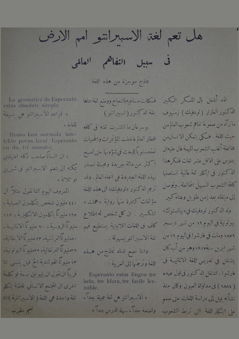 هل تعلم لغة الاسبيرانتو امم الارض في سبيل التفاهم العالمي :