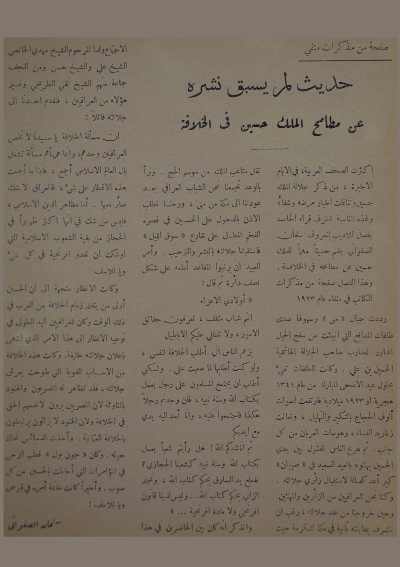 حديث لم يسبق نشره عن مطامح الملك في الخلافة.