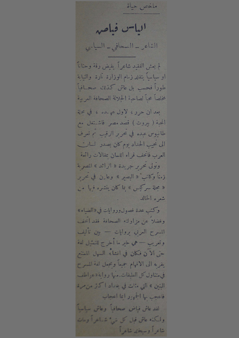 ملخص حياة الياس فياض الشاعر - الصحافي - السياسي.