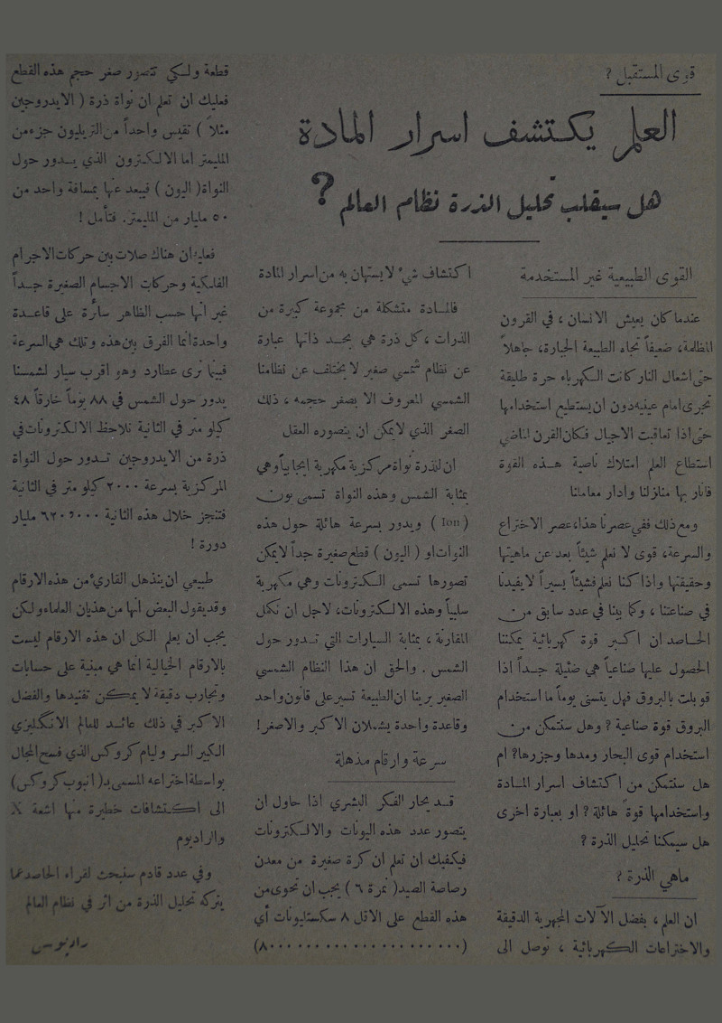 العلم يكتشف اسرار المادة : هل سيقلب تحليل الذرة نظام العالم.