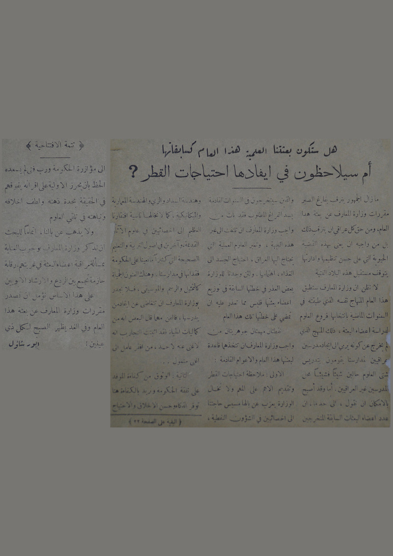 هل ستكون بعثتنا العلمية هذا العام كسابقاتها أم سيلاحظون في ايفادها احتياجات القطر.