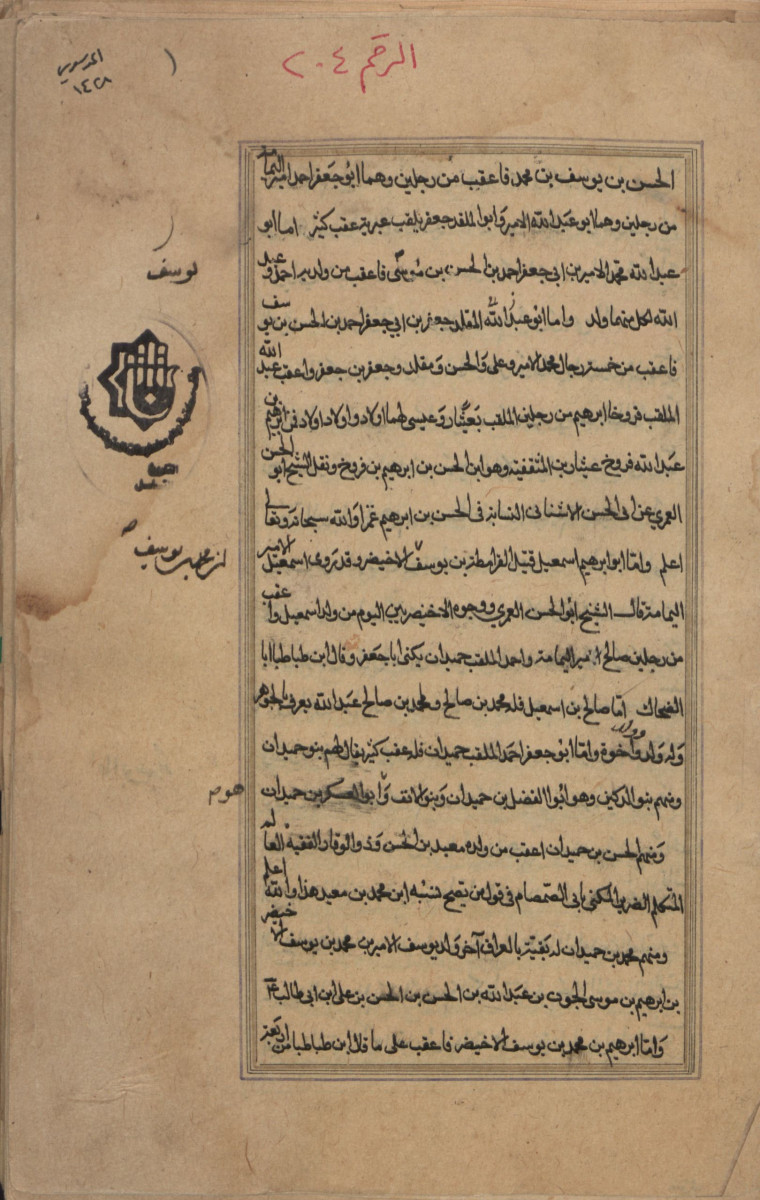 أوله ناقص : الحسن بن يوسف بن محمد فأعقب من رجلين وهما ابو جعفر احمد امير اليمامة من رجلين وهما.