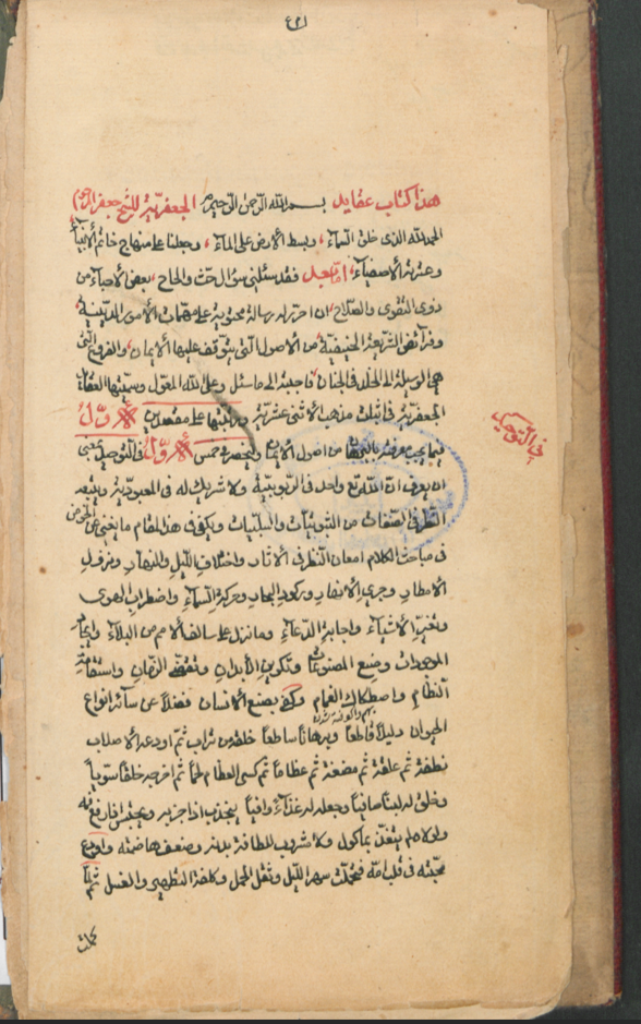 اوله : الحمد لله الذي خلق السماء وبسط الأرض على الماء وجعلنا على منهاج خاتم الأنبياء وعترته الأصفياء.