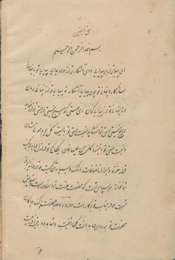 اوله : اي بيدا تر از هر بيدايى و اى آشكار تراز هر هويدايى بيدايى توبا بنهانى سازكار وبنهانى تو جون بيدايى آشكار.