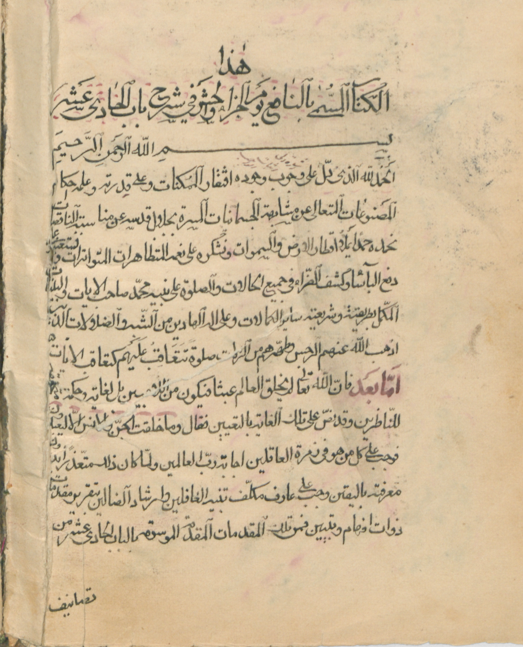 اوله : الحمد لله الذي دل على وجوب وجوده افتقار الممكنات وعلى قدرته وعلمه إحكام المصنوعات المتعالي عن مشبهاته الجسمانيات.