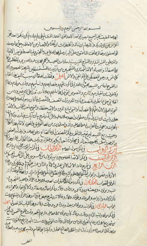 اوله : الحمد لله اللطيف الخبير السميع البصير الواحد الأحد الفرد الصمد الذي لم يلد ولم يولد ولم يكن له كفوا أحد.