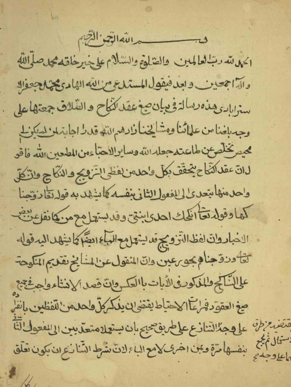 أوله : الحمد لله الذي هدانا الى فقه الاحكام بلاصل القديم المشتقمن الفرع الكريم واله الصراط المستقيم والميزان القويم...