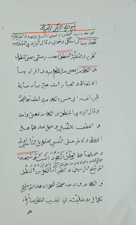 أّوله : الحمد لله رب العالمين، والصلاة والسلام على محّمد وآله الطيبين الطاهرين، تهذيب، آراستگى وخوبي، وقال: اليزدّي، التهذيب، التحرير، والتنقية.