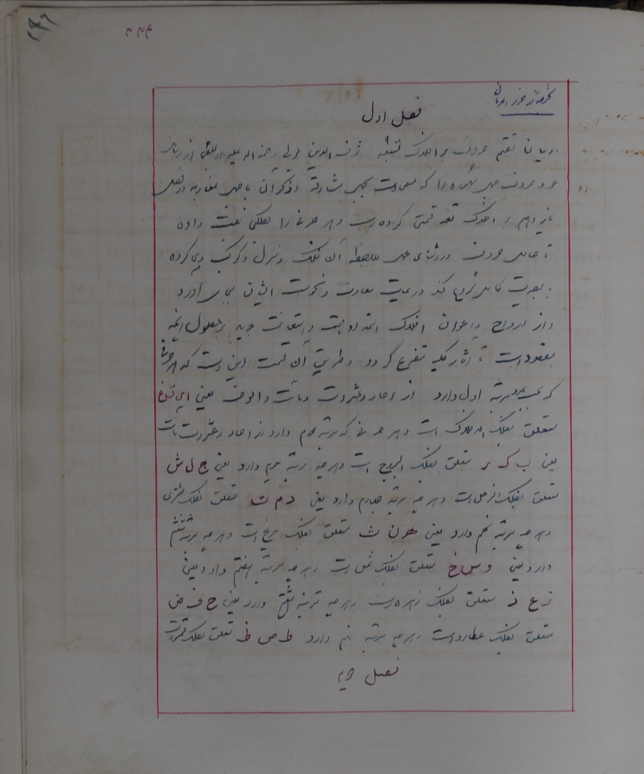 أّوله : در بيان تقسم حروف بر افلاك تسعة شرف الدين بر لي رحمة الله عليه در بعض از رسايل خود حروف جمل مشهوره را كه مساوى است..