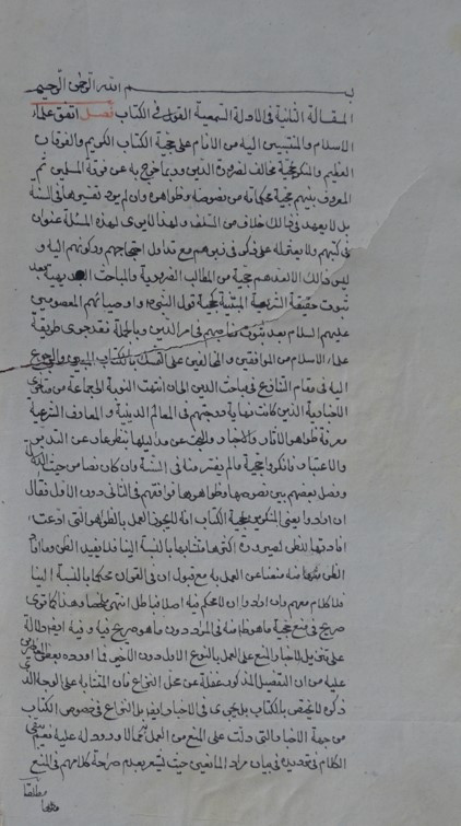 $aأوله : المقالة الثانية : في الادلة السمعية. القول في الكتاب. فصل اتفق علماء الاسلام والمنتسبين اليه من الأنام على حجية الكتاب الكريم..