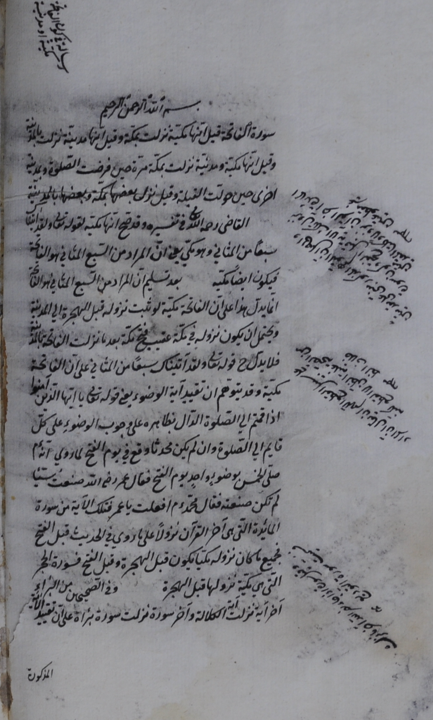 $aأّوله : سورة الفاتحة قيل إنها مكية نزلت بمكة، وقيل إنها مدنية نزلت بالمدينة، وقيل إنها مكية ومدنية، نزلت بمكة مرة حين فرضت الصلاة...