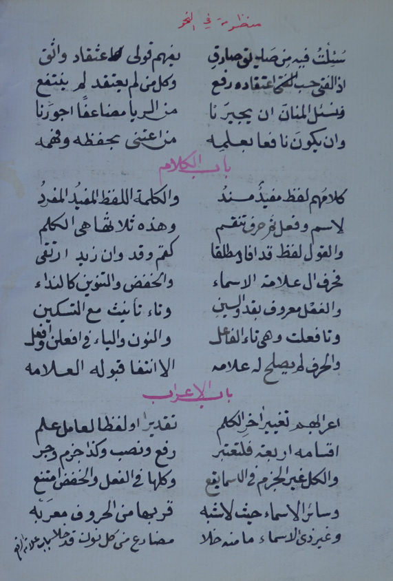 آخره ناقص : وقد مضت احكام كل تابع *** مبسوطة في الاربع التوابع *** فيا الهي الطف بنا فنتبع *** سبل الرشاد والهدى فنرتفع...