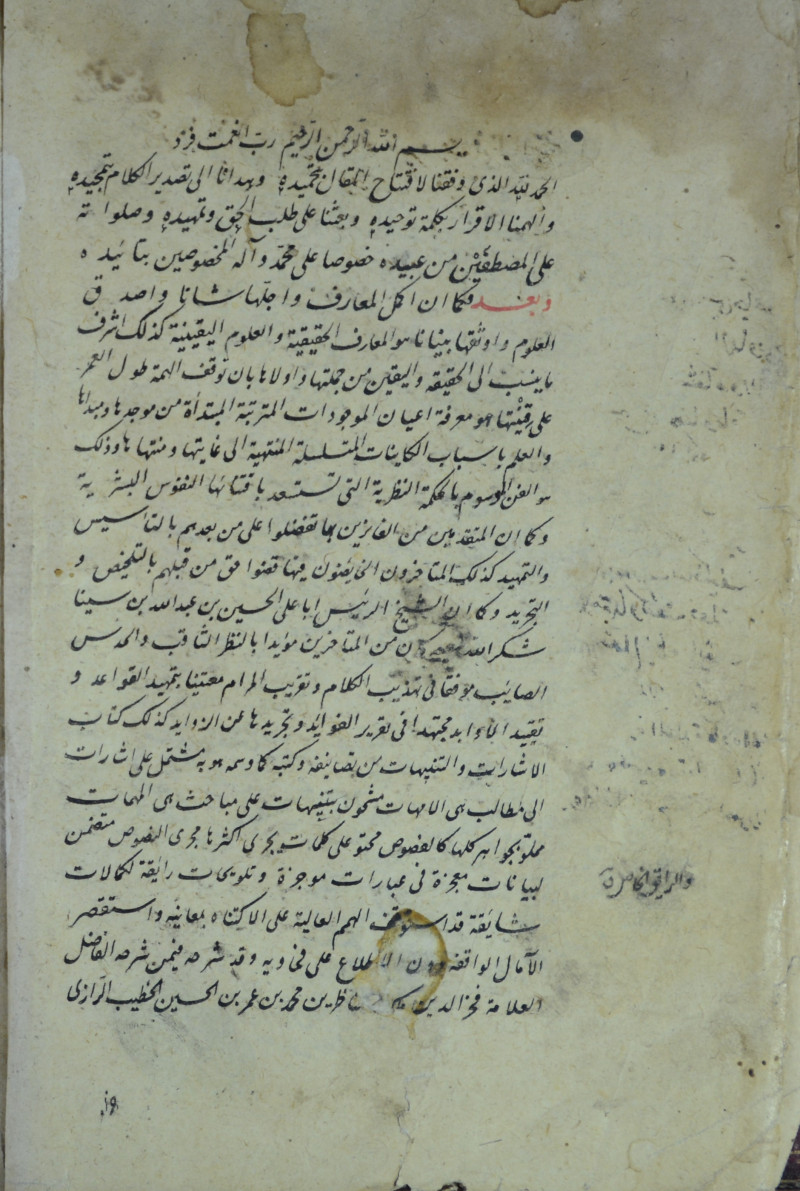 $iشرح لـ (عمل) : $aابن سينا، الحسين بن عبد الله بن سينا، $cالرئيس، $d370-428 هجري. $tالاشارات والتنبيهات.