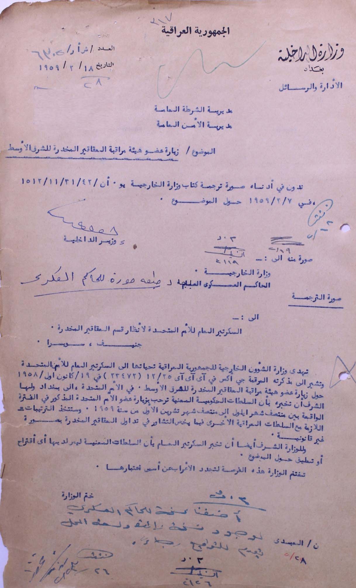 زيارة عضو هيئة مراقبة العقاقير المخدرة للشرق الاوسط،