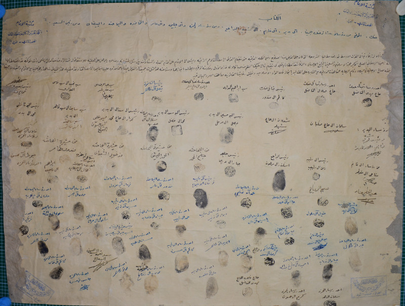 [وثيقة من رؤساء عشائر عفك جميعا آل غتمن وآل شبيب البراجع ومن رؤساء الحمزة وآل جليحه وآل عامر والمخاضرة والمياجنه والبيضان ومن رئيس السعيد]