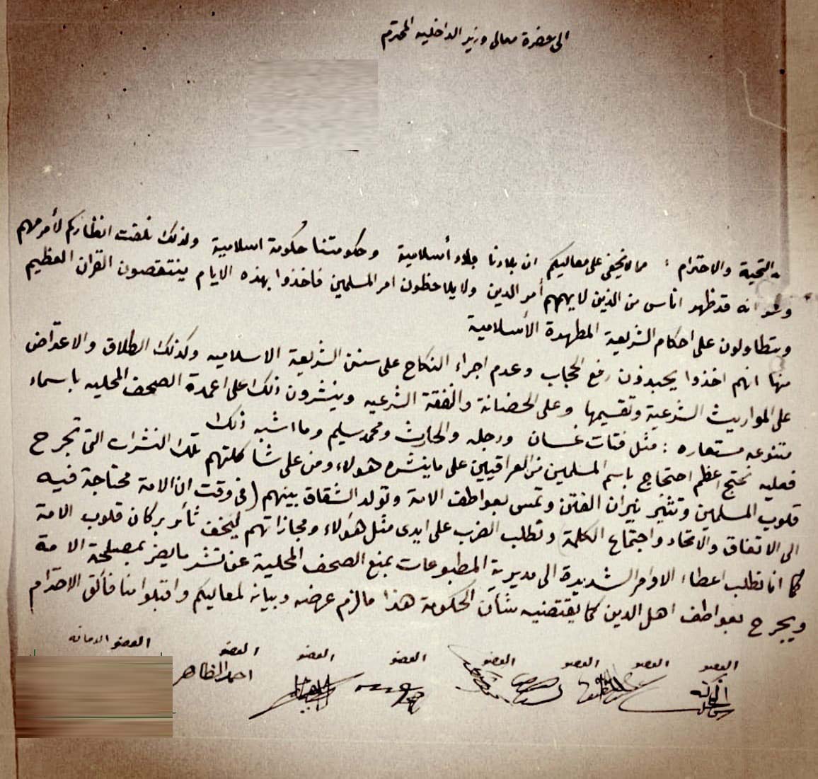 [اعتراض اعضاء البرلمان العراقي عام 1924 على ما تنشره الصحف والمجلات من الترغيب على خلع الحجاب والامور التي لها مساس بالاسلام]