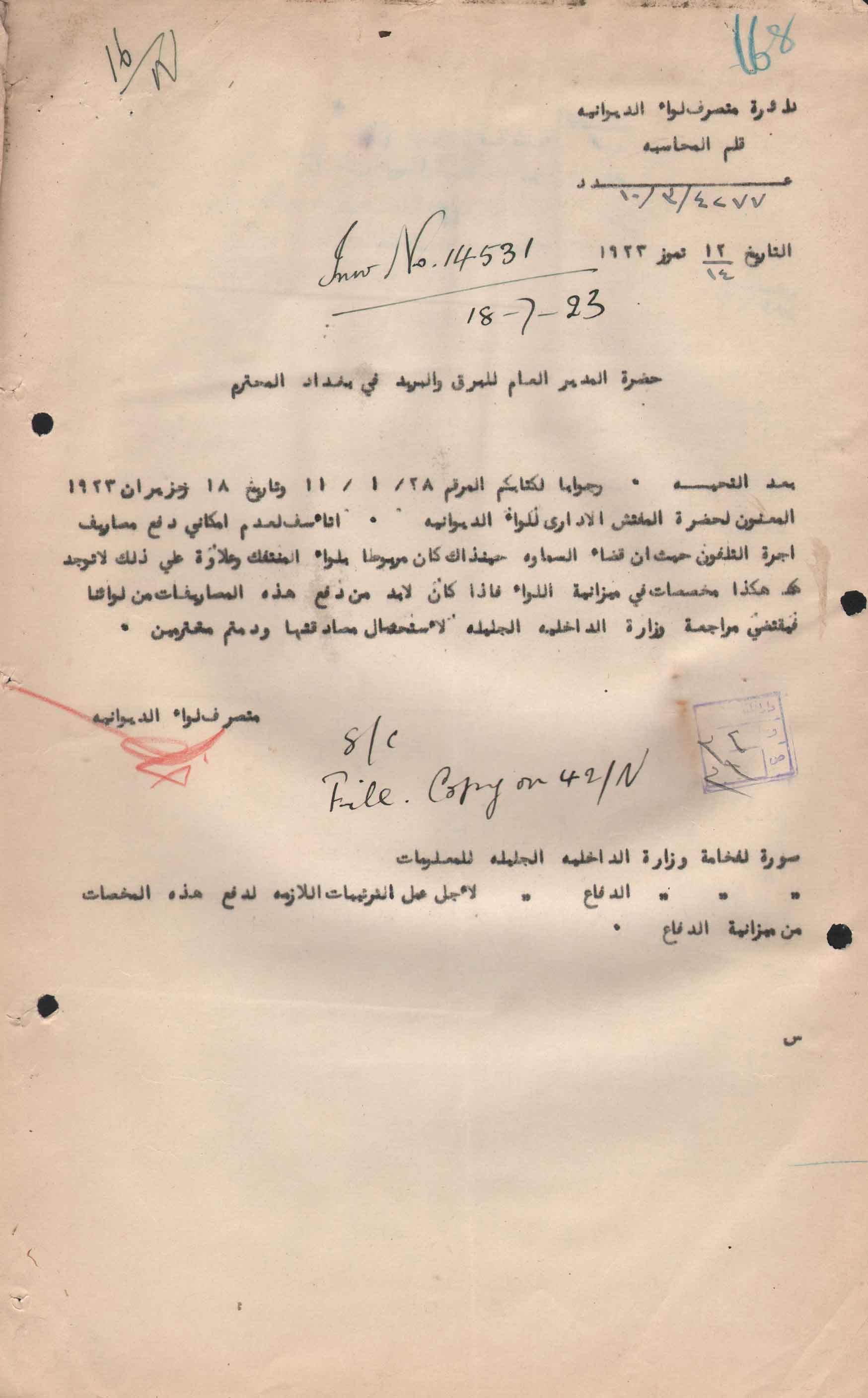 [عدم امكانية دفع مصاريف اجرة التلفون لقضاء السماوة]