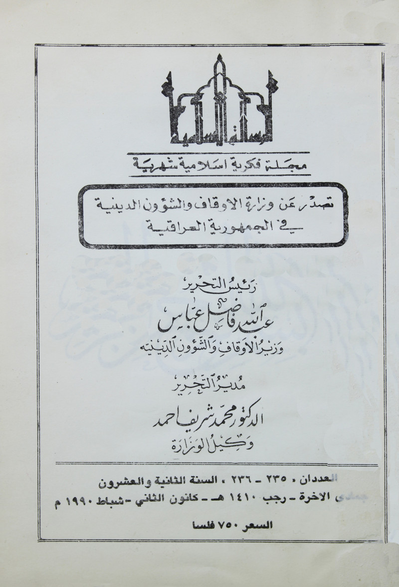 صدرت عن : ديوان الاوقاف و وزارة الاوقاف والشؤون الدينية 1968-2003 ؛ صدرت عن ديوان الوقف السني 2003-