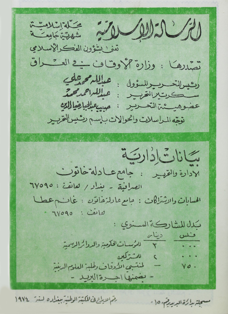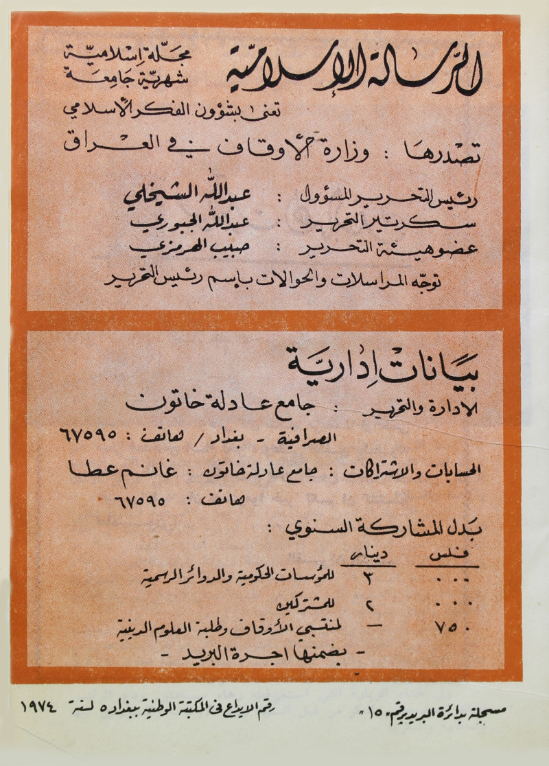 الرسالة الاسلامية (مجلة : بغداد، العراق)