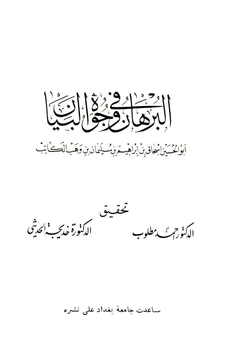 ابو الحسين اسحاق بن ابراهيم بن سليمان بن وهب الكاتب ؛ تحقيق الدكتور احمد مطلوب، الدكتورة خديجة الحديثي.
