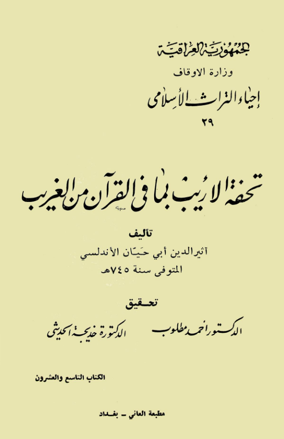 تاليف اثير الدين ابي حيان الاندلسي ؛ تحقيق الدكتور احمد مطلوب، الدكتورة خديجة الحديثي.