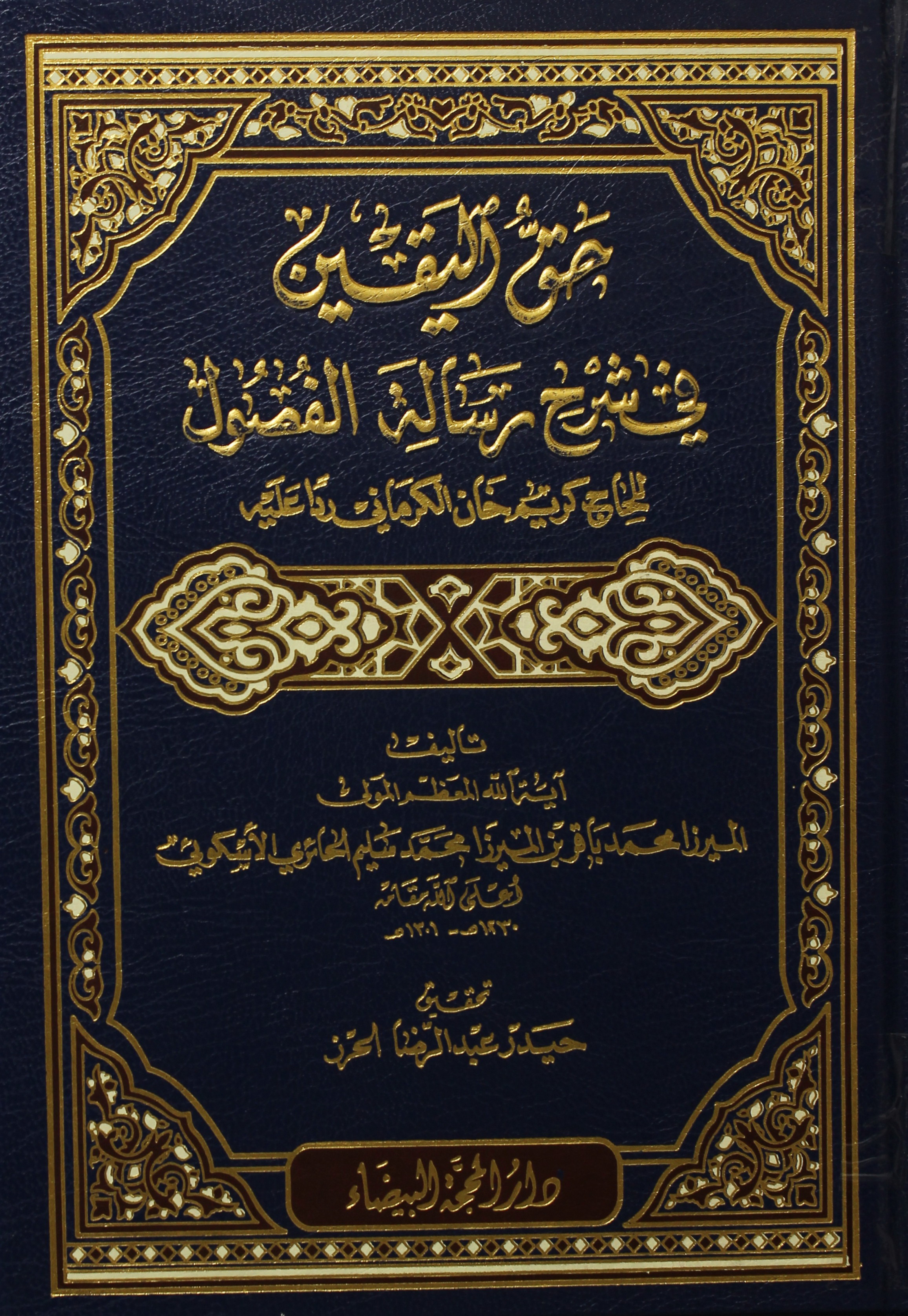 $aحق اليقين في شرح رسالة (الفصول) : $bللحاج كريم خان الكرماني ردًا عليه / $cتأليف آية الله المعظم المولى الميرزا محمد باقر بن الميرزا محمد سليم الحائري الأسكوئي ؛ تحقيق حيدر عبد الرضا الحرز.
