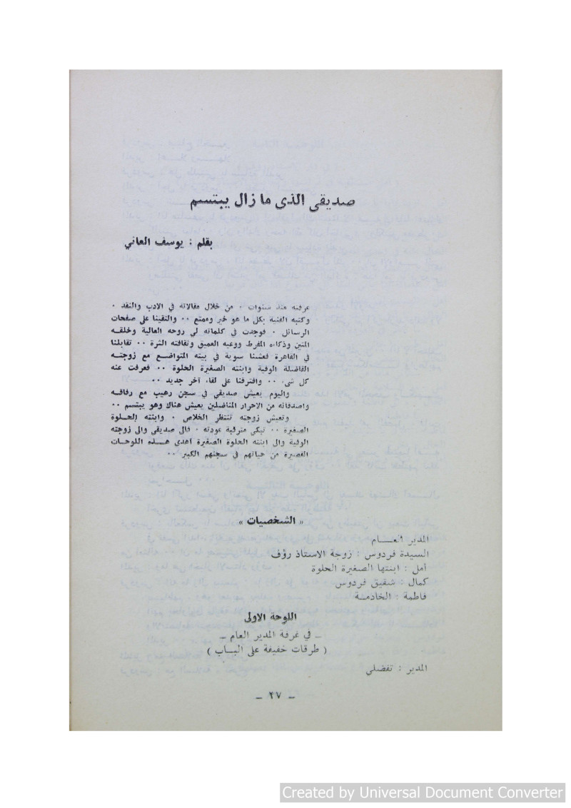 صديقي الذي ما زال يبتسم / بقلم : يوسف العاني.