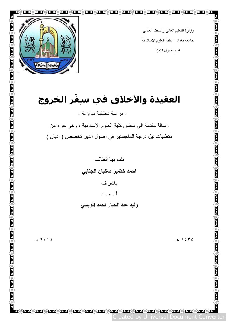 $bماجستير $cجامعة بغداد، كلية العلوم الاسلامية، قسم أصول الدين $d2014.
