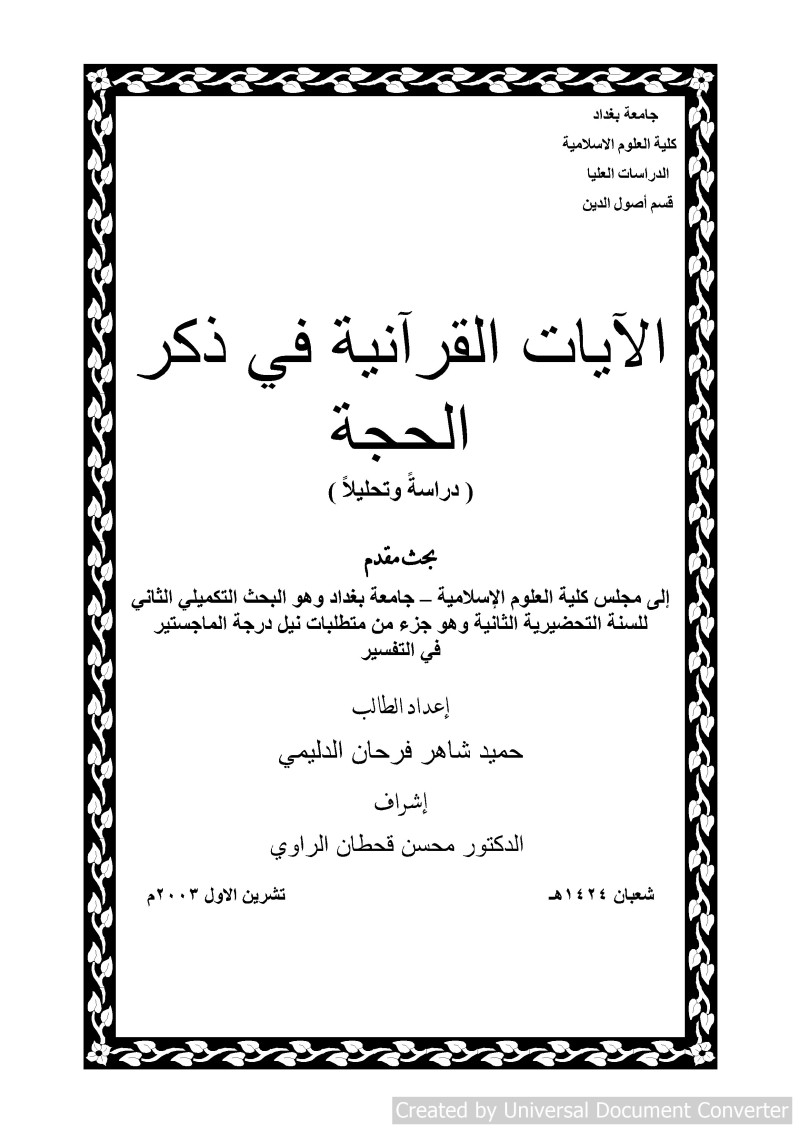 جامعة بغداد، كلية العلوم الاسلامية، قسم اصول الدينd2019.