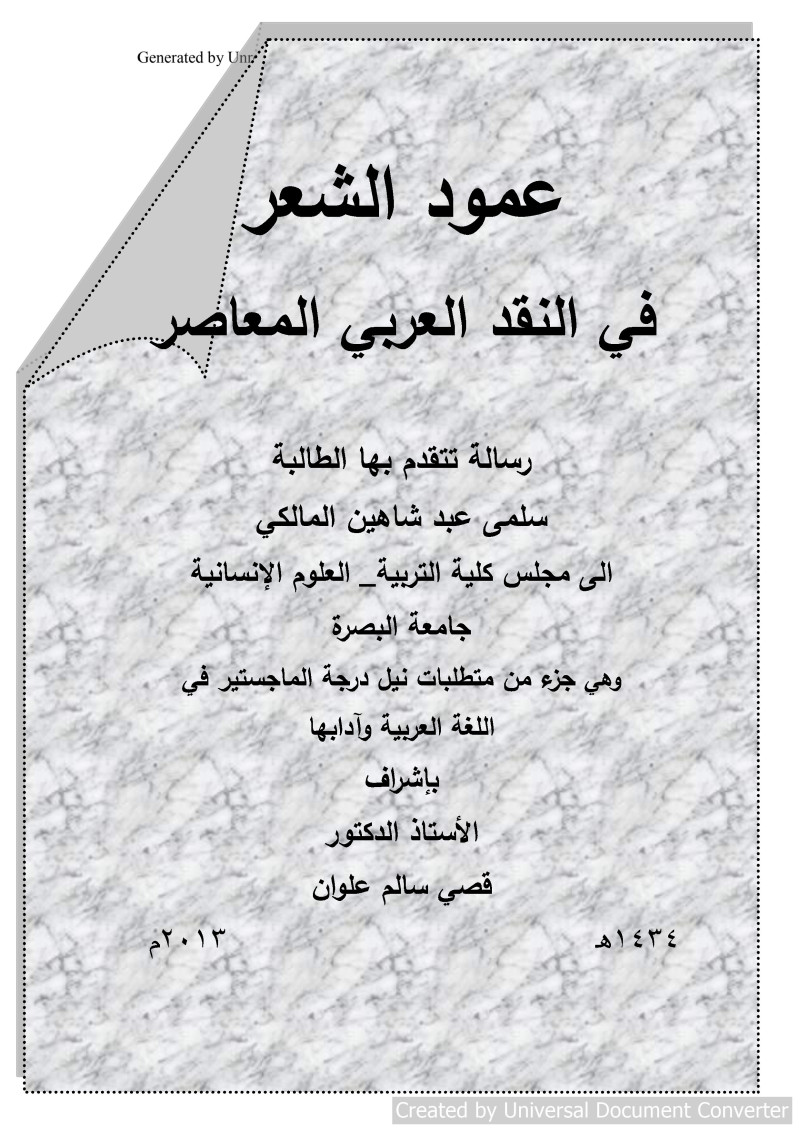 اعداد سلمى عبد شاهين المالكي ؛ اشراف الاستاذ الدكتور قصي سالم علوان.