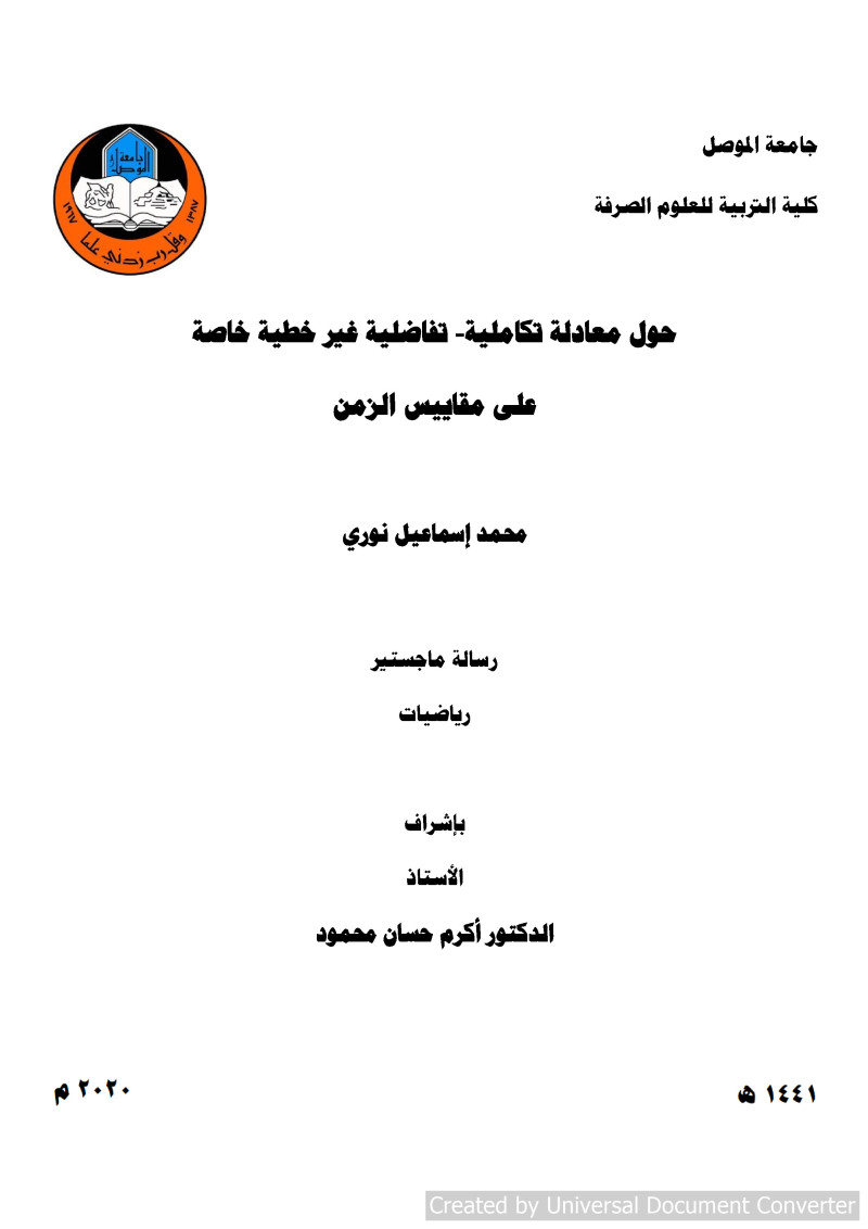 $aحول معادلة تكاملية- تفاضلية غير خطية خاصة على مقاييس الزمن = $bOn Certain Nonlinear Integro-differential Equation on Time scales / $cمحمد اسماعيل نوري ؛ باشراف الاستاذ الدكتور اكرم حسان محمود.