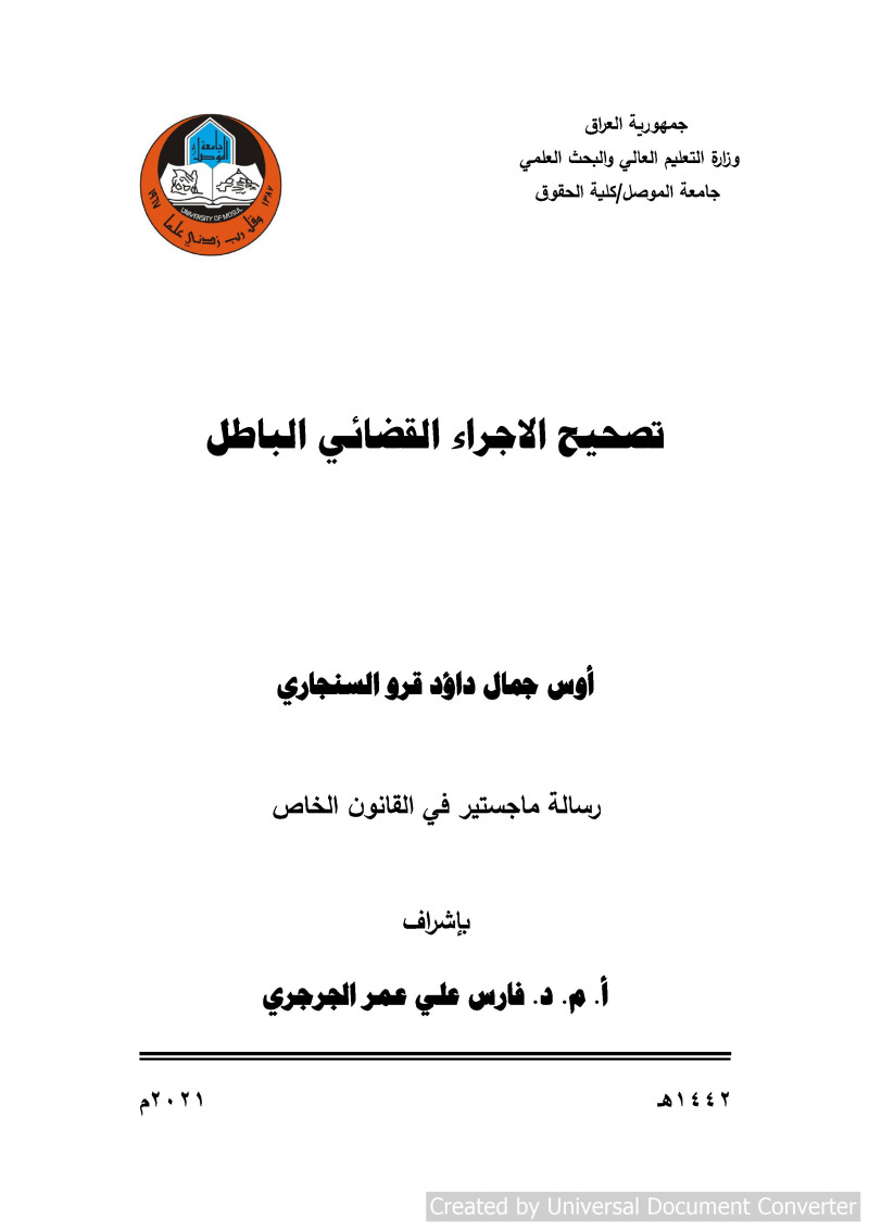 اوس جمال داؤد قرو السنجاري ؛ اشراف أ. م. د. فارس علي عمر الجرجري.