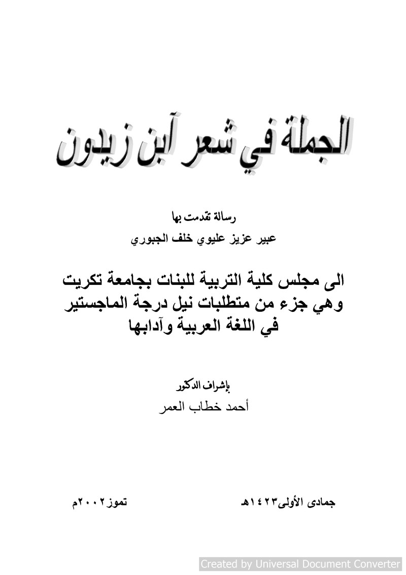 رسالة تقدمت بها عبير عزيز عليوي خلف الجبوري ؛ بإشراف الدكتور أحمد خطاب العمر.
