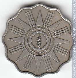 الوجه الامامي منقوش 14 تموز / 1958 / الجمهورية العراقية والوجه الخلفي منقوش 1379 / 1959 / 5 فلس / الجمهورية العراقية.