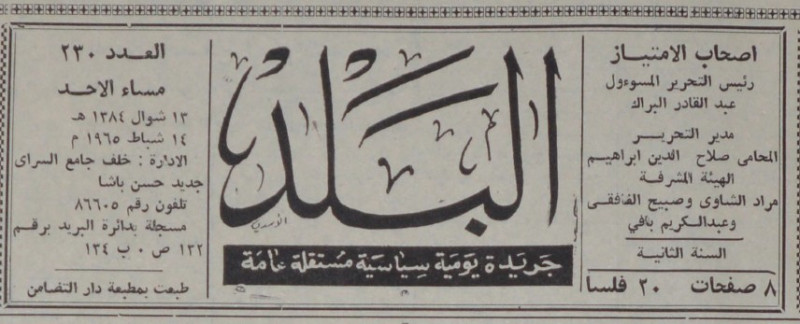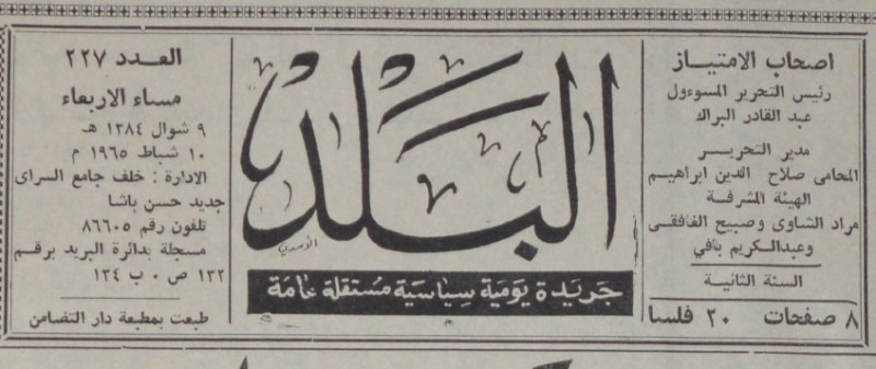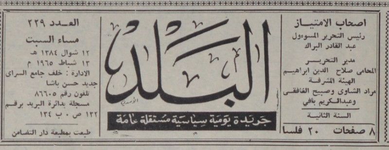 رئيس التحرير المسؤول : عبد القادر البراك.
