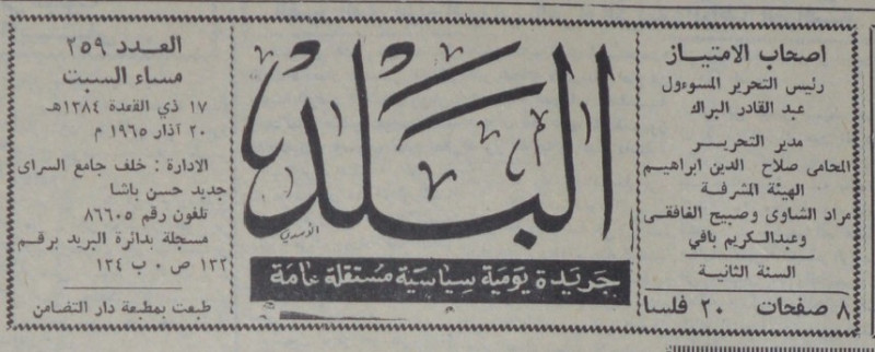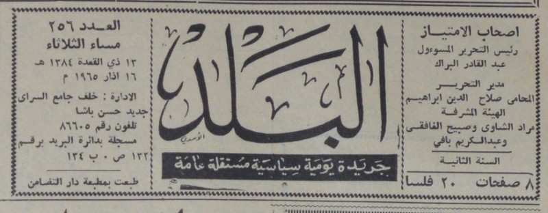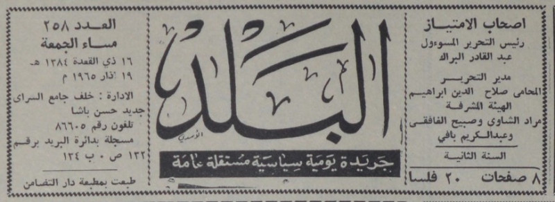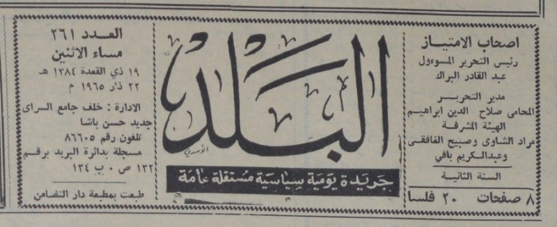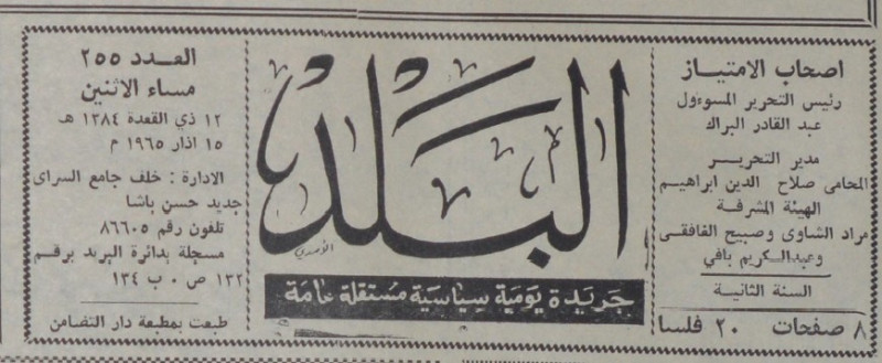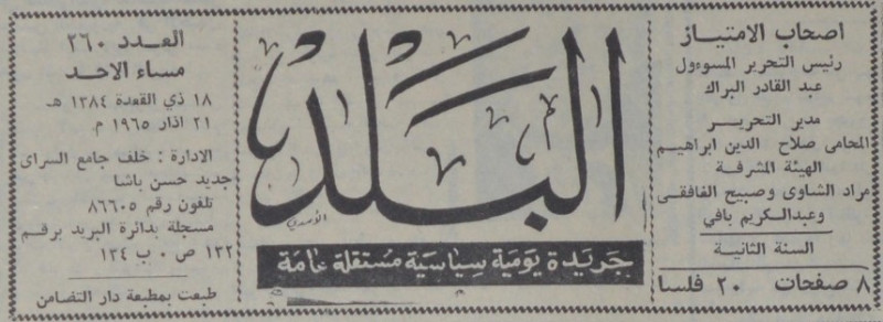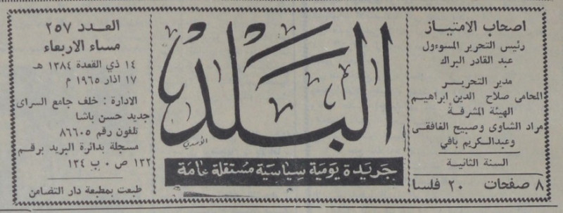 رئيس التحرير المسؤول : عبد القادر البراك.