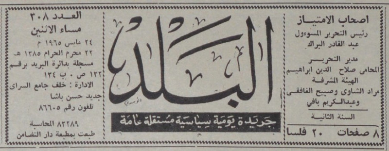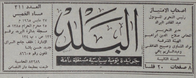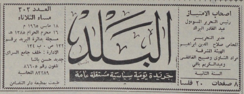 رئيس التحرير المسؤول : عبد القادر البراك.
