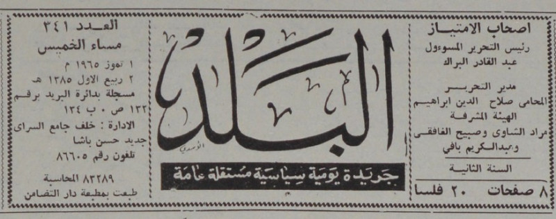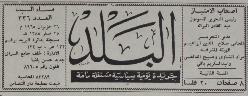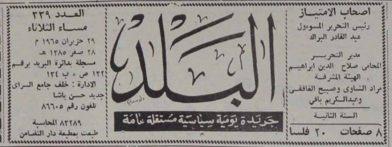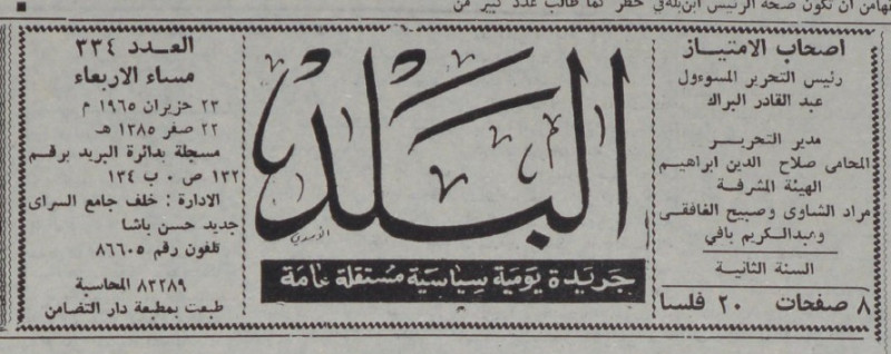رئيس التحرير المسؤول : عبد القادر البراك.