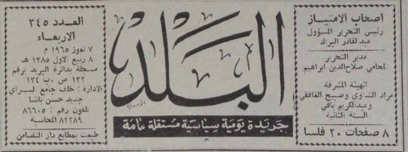 رئيس التحرير المسؤول : عبد القادر البراك.