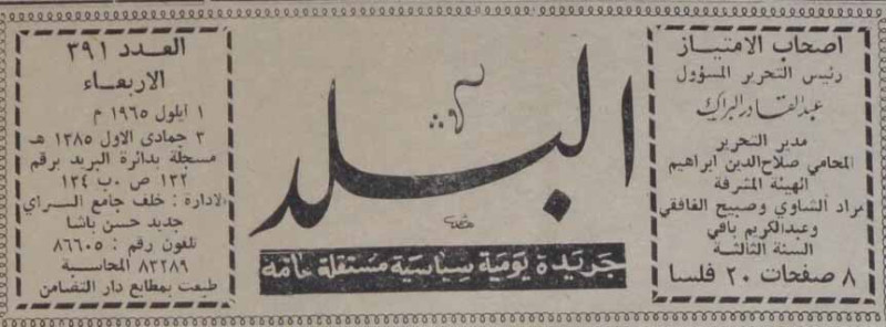 رئيس التحرير المسؤول : عبد القادر البراك.