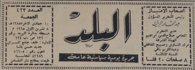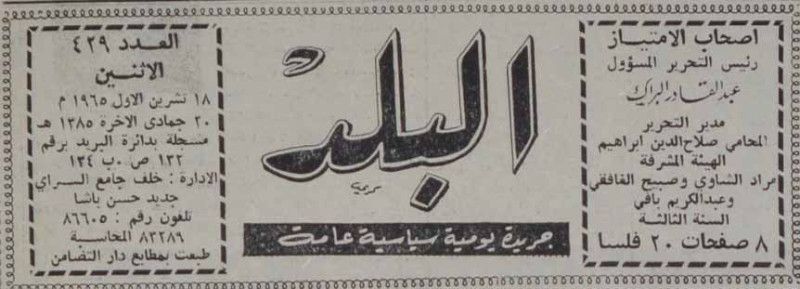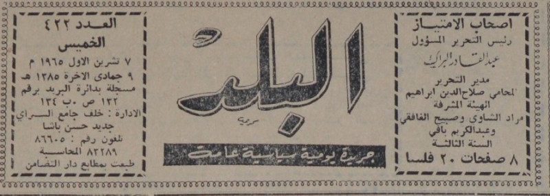 رئيس التحرير المسؤول : عبد القادر البراك.