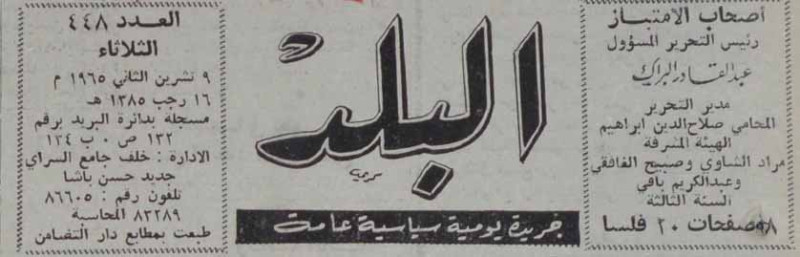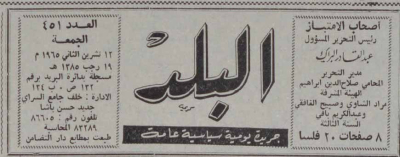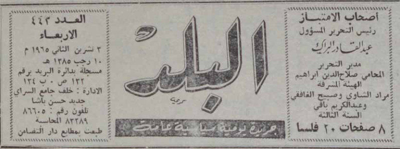 رئيس التحرير المسؤول : عبد القادر البراك.