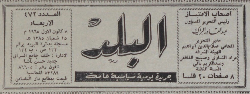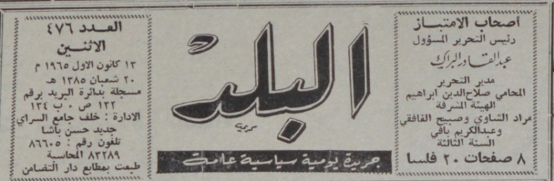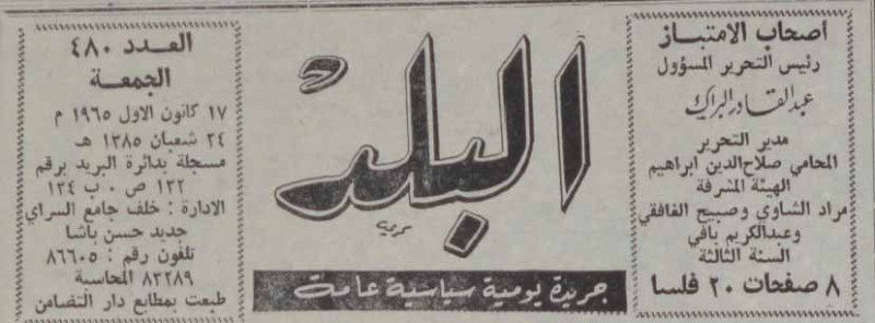 رئيس التحرير المسؤول : عبد القادر البراك.