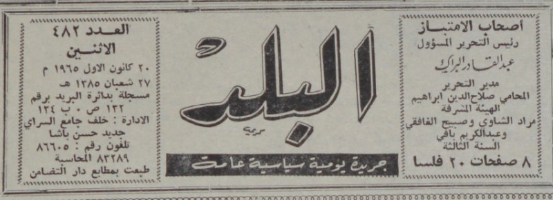 رئيس التحرير المسؤول : عبد القادر البراك.
