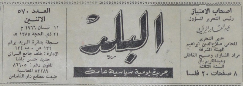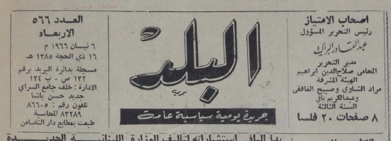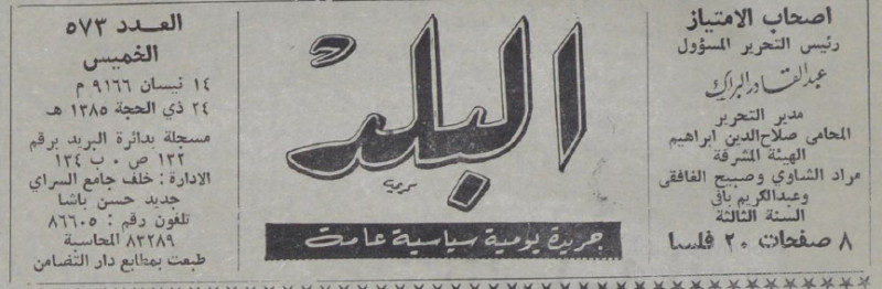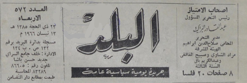 رئيس التحرير المسؤول : عبد القادر البراك.